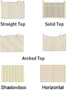 Another appealing characteristic of wood fences is they are easy to customize! We have a wide variety of pickets such as your standard flat top, dog eared, gothic, and French gothic. Wood pickets that mix and match perfectly with unique caps, face trim, columns, and stain treatments, adding even more beauty to your new wood fences! Also, we have a range of styles to satisfy your personal preference, including: